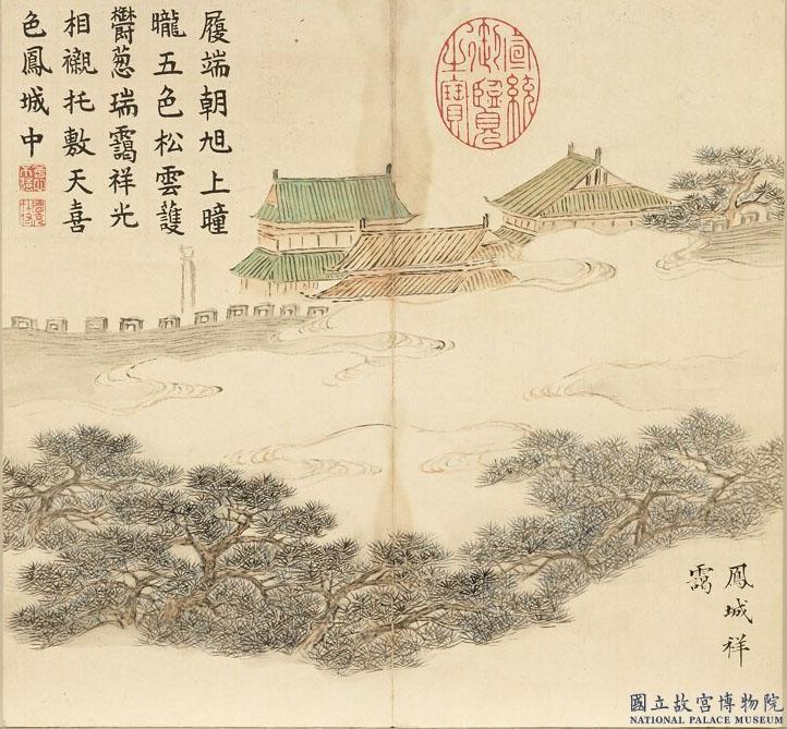 履端朝旭上曈昽。五色松云护郁葱。瑞霭祥光相衬托。敷天喜色凤城中。