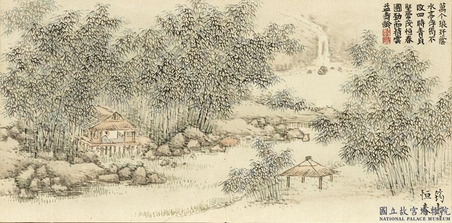万个琅玕荫水亭。浮筠不改四十青。贞坚常茂恒春圃。劲节捎云益寿龄。