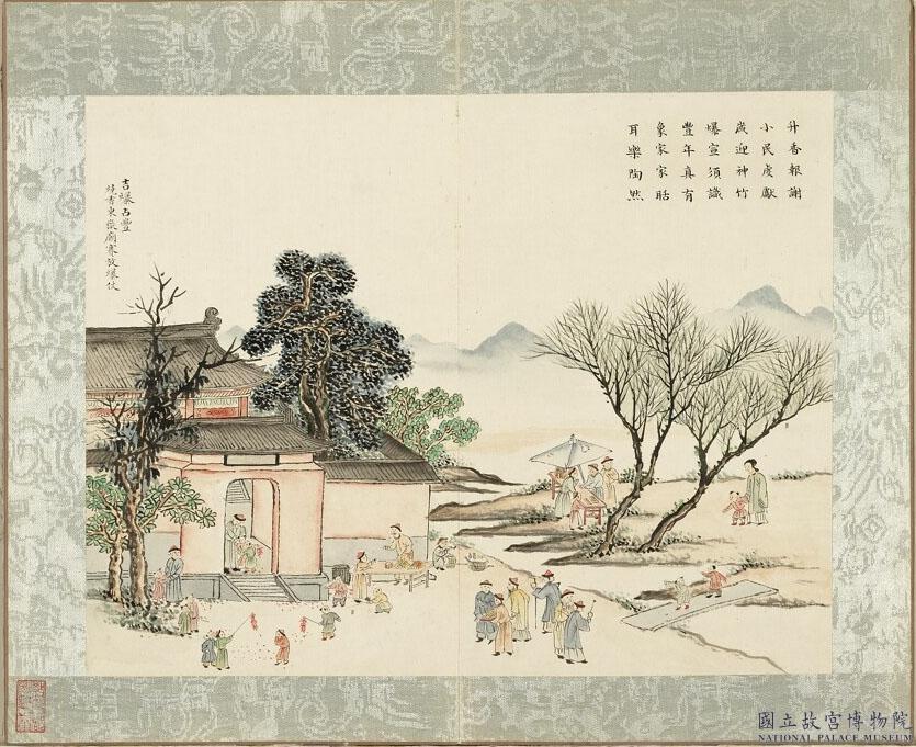 升香报谢小民虔。献岁迎神竹爆宣。须识丰年真有象。家家聒耳乐陶然。