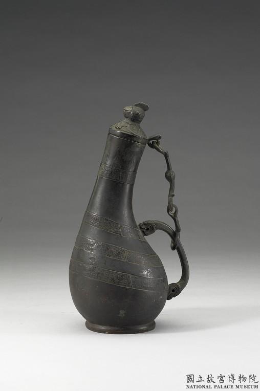 全器以匏瓜为造型,器盖以鸟为形,足踩双蛇,鸟嘴可开合,尾上扬附环,以提链与柄相连,柄于腹下侧作双兽首形,提链作蛇形。直口,长颈,鼓腹,圈足。颈饰三角纹,内填雷纹,腹饰蟠虺纹。腹范线明显。