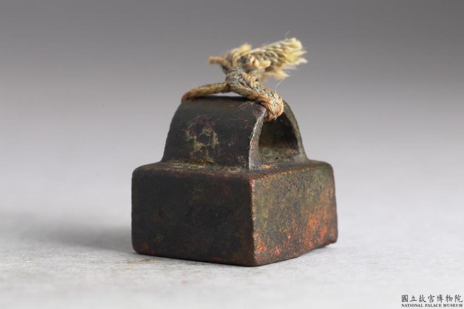 铜印,瓦钮,钮上系绳,印面正方,右起横读篆文「肥终」二字,俱作白文,匀厚又圆弧的线条,或紧或松,架构出具有设计感的结字,红白之间遂相映成趣。私印。本印置于清乾隆朝「金薤留珍」之「书」柜屉匣中。「金薤留珍」乃乾隆朝时将内府所收的前代印记整理编次而成。其包含铜官印221件,私印1070件,共1294件,存放于「东」、「壁」、「图」、「书」、「府」五个黑地金漆龙纹屉匣中,并依各柜所藏编制印谱。印谱目录编次方式以官印为始,继以私印,可能是援引明代以来印谱编目的传统。