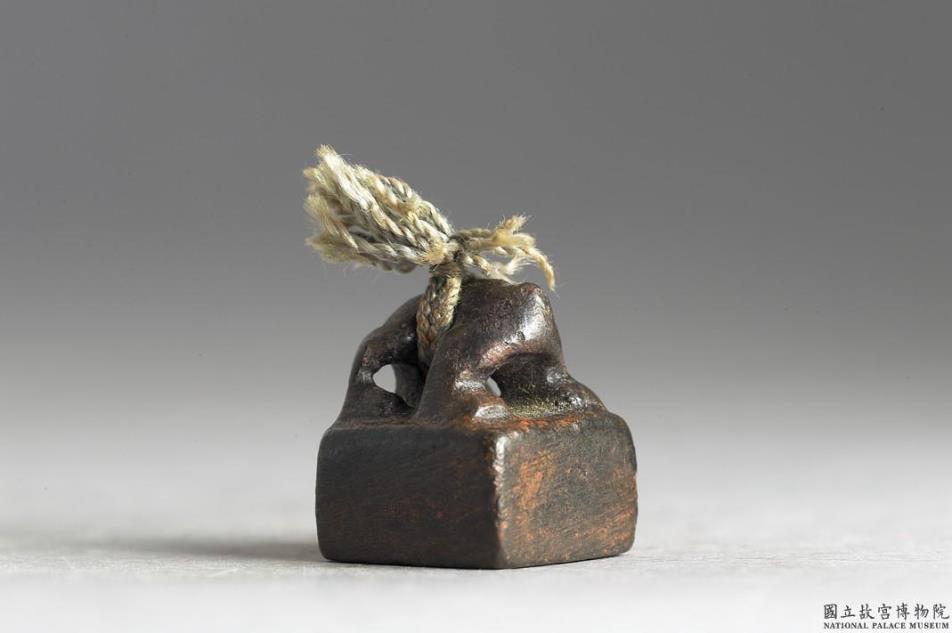 方形铜印,龟钮系绳,印面带有右起横读白文「天胜」两字。本印置于清乾隆朝「金薤留珍」之五箧其中「府」屉之中。「金薤留珍」乃乾隆朝时将内府所收的前代印记整理编次而成;包含铜官印221件,私印1070件,共1291件,存放于「东」、「壁」、「图」、「书」、「府」五个黑地金漆龙纹屉匣中,并依各柜所藏编制印谱。印谱目录编次方式以官印为始,继以私印,可能是承袭明顾从德《集古印谱》之编目方法。