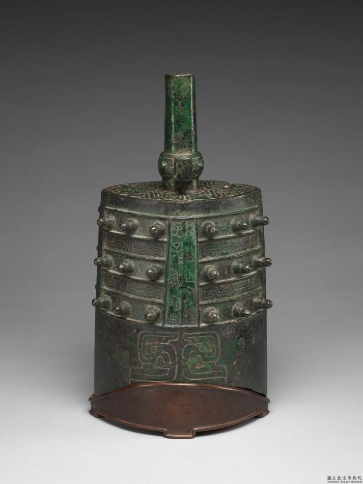 合瓦形,扁圆体,长甬,弧形口,两面各有枚十八个。舞部饰双龙首窃曲纹四组,区隔钲、篆的界栏突起,枚作柱状,鼓部正中饰左右对称的长鼻曲体龙纹。铭文在钲间,计二行十字,重文二字:「芮公作从钟,子子孙孙永宝用。」此器形制及舞部、鼓部纹饰近于梁带村二十七号墓出土编钟。