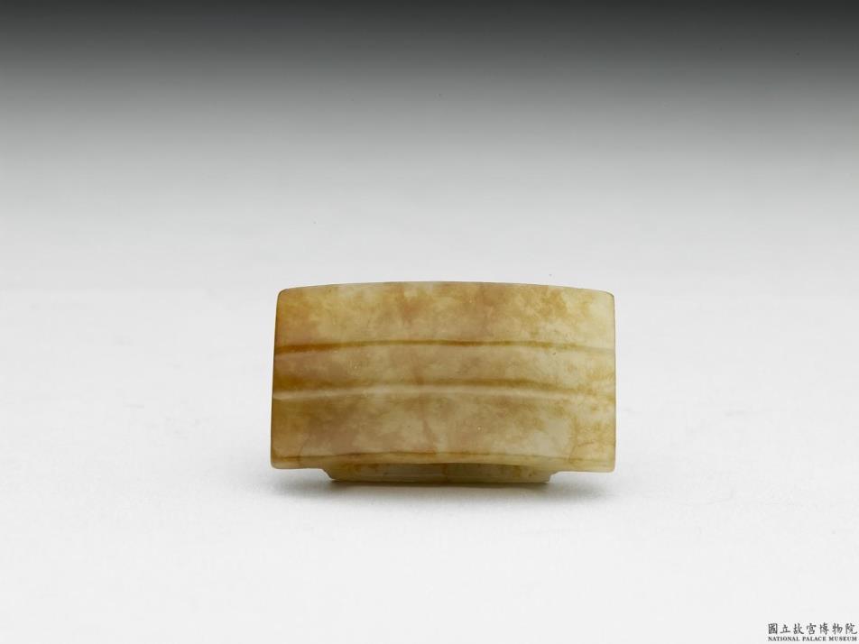 玉质,有赭斑。玉剑璏,面琢两道弦纹。