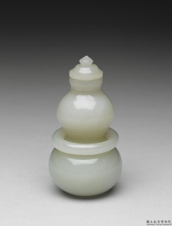 玉雕葫芦,腰部镂刻一活环,带宝顶玉盖与玳瑁匙。