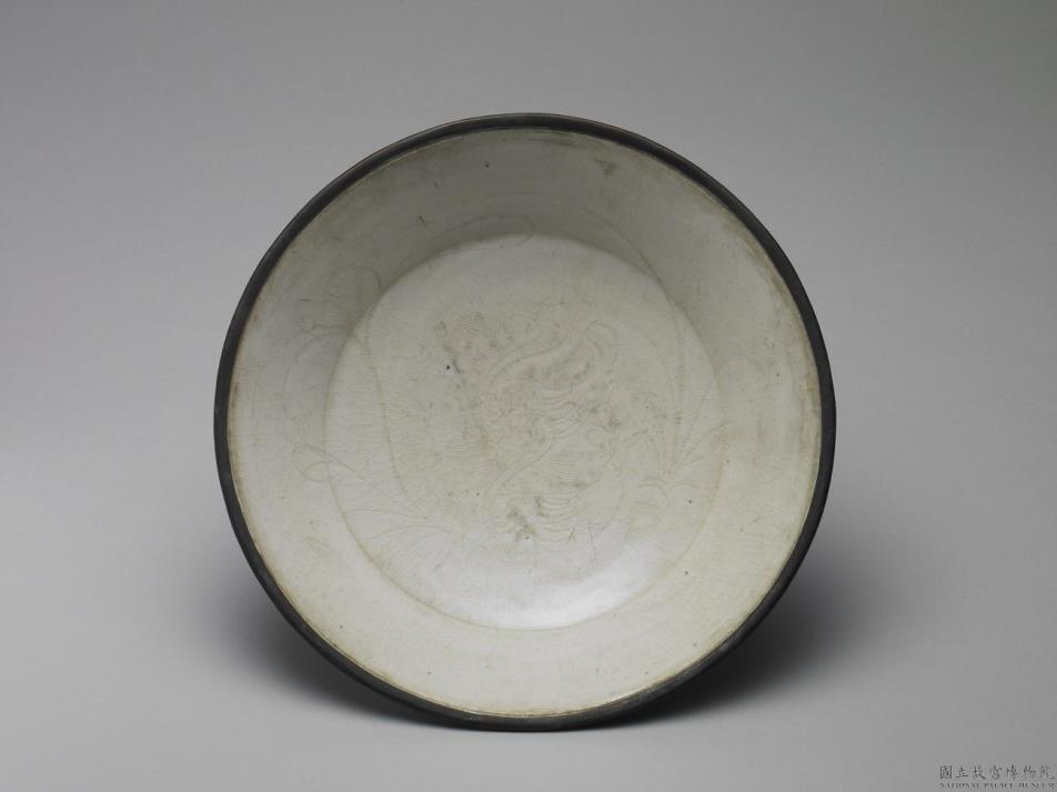 定窑 白瓷划花莲塘双凫纹盘