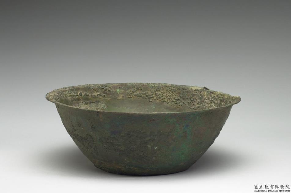 甑,侈口,圆腹,平底,腹壁斜直外敞。口沿伤残,器表多处有铜器病。