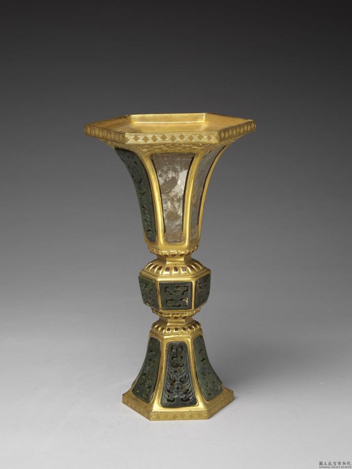 铜镀金嵌碧玉及填料五供之二(瓶)