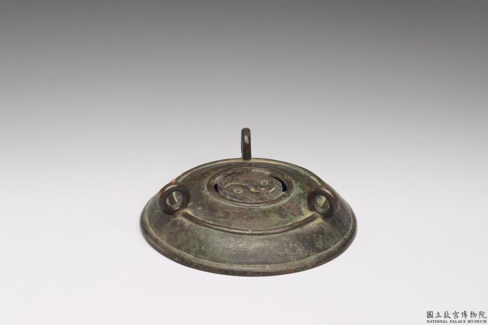 圆盖,盖面有三环耳捉手,盖中央饰太极,外环弦纹。