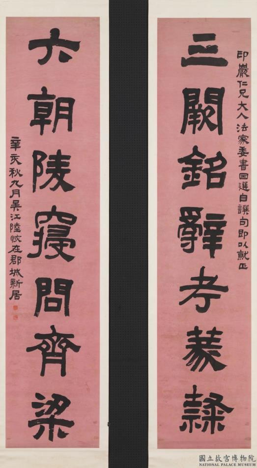 上联题签。陆廉夫字对上。下联题签。陆廉夫字对下。