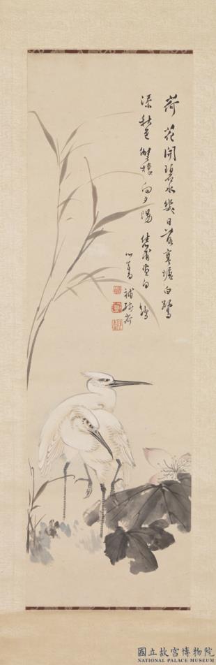 荷花开碧水。几日落寒塘。白鹭添秋色。双栖向夕阳。隽甫画白鹭。心畬补残荷。