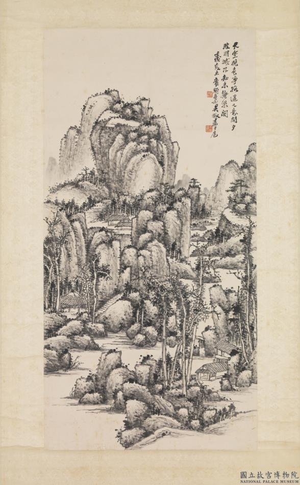 吴待秋山水。壬戌(公元一九二二年)仲夏玄公题。