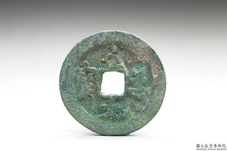方孔圆钱,正面书:「至道元宝」四字,背面无文,传钱文为宋太宗手书。