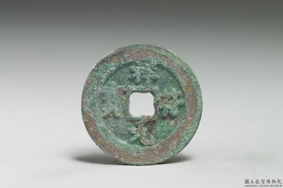 方孔圆钱,正面有楷书:「祥符元宝」四字,背面无文。