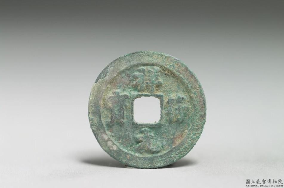 方孔圆钱,正面有楷书:「祥符元宝」四字,背面无文。