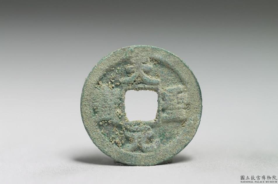 方孔圆钱,正面有楷书:「天圣元宝」四字,背面无文。
