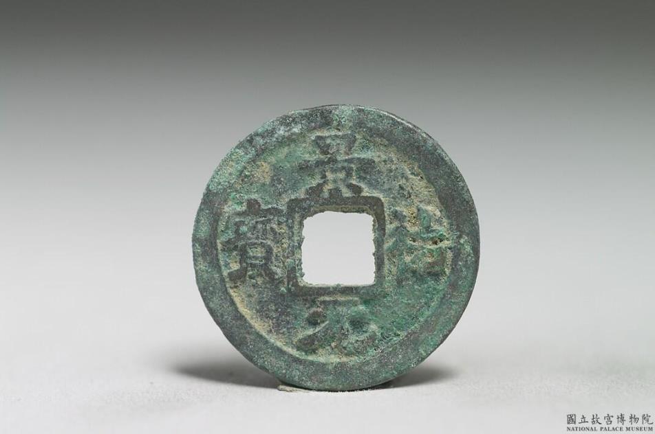 方孔圆钱,正面有楷书:「景佑元宝」四字,背面无文。