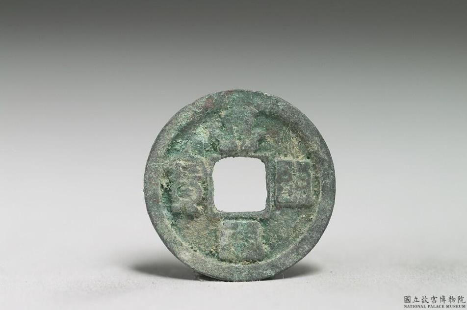 方孔圆钱,正面有篆书:「嘉佑通宝」四字,背面无文。