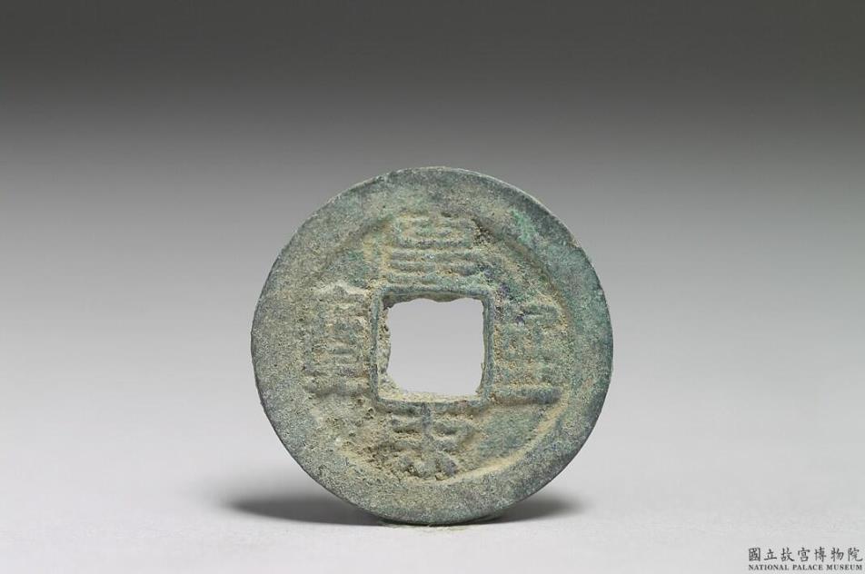 方孔圆钱,正面有篆书:「皇宋通宝」四字,背面无文。