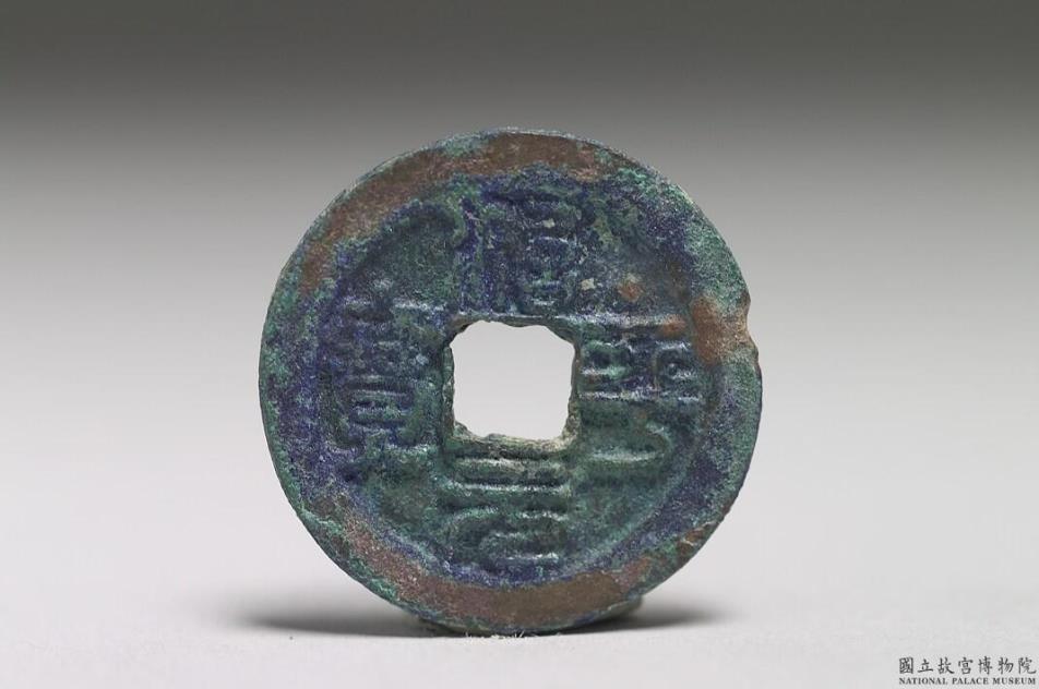 方孔圆钱,『治平元宝』有楷、篆两种字体,又有铜、铁两种材质。此枚为铜钱,正面有小篆「治平元宝」四字,背面无文。