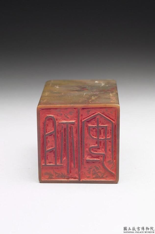 昌化石章,灰绿色中夹杂赭、白色斑。长方体,印面正方。印面阳刻二字篆文:「组安」,中间以界线分隔。边款:「癸亥四月。?斋。」?斋乃印人李尹桑之号,可知此印为李尹桑所治。与另一印文为「谭延闿印」的印章成对。